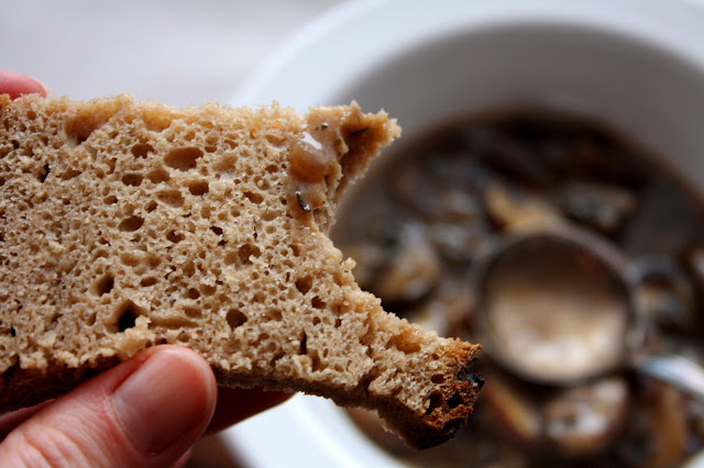 Ok, bevor jemand etwas sagt: Ja ich esse Bratensoße mit Roggenbrot. Leckerem, saftigen Roggenbrot mit dunkler, knackiger Kruste.Hmmm!